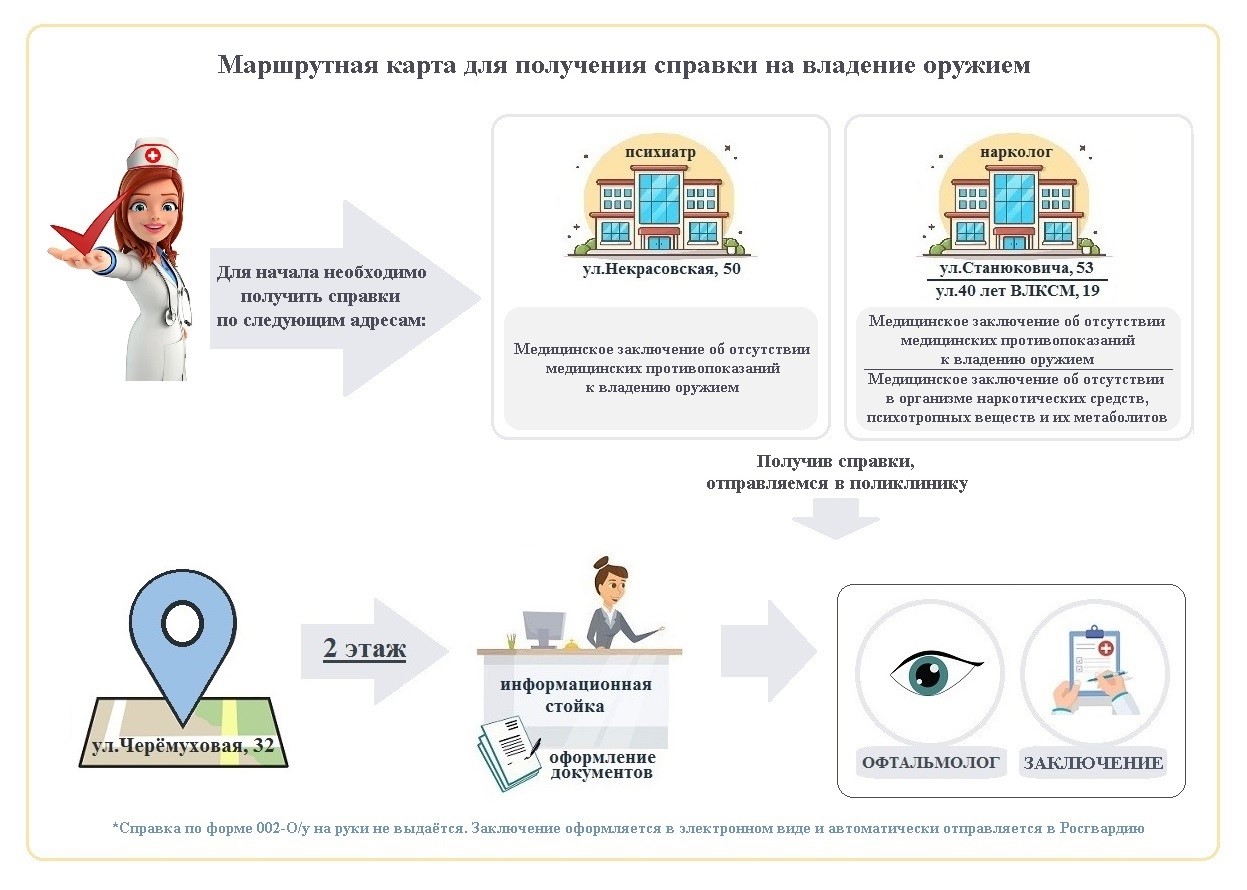 Получить медицинское заключение об отсутствии медицинских противопоказаний к владению оружием можно по адресу: